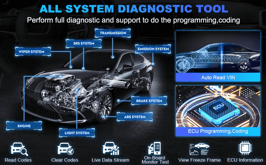 6. Support Active Test, Auto Read VIN, Perform OEM Functions.