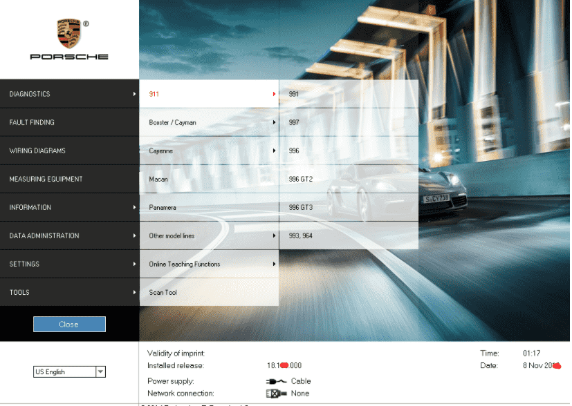 10.V18.1000 Porsche Piwis Tester II Functions and Descriptions:
