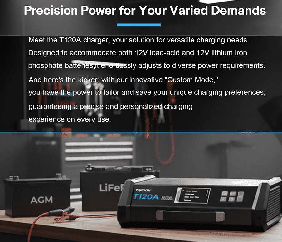 1.Battery Types: Charges and maintains Wet, Gel, MF, EFB, AGM, Ca, VRLA lead-acid batteries and 12V Lithium Iron Phosphate (LiFePO4) batteries.