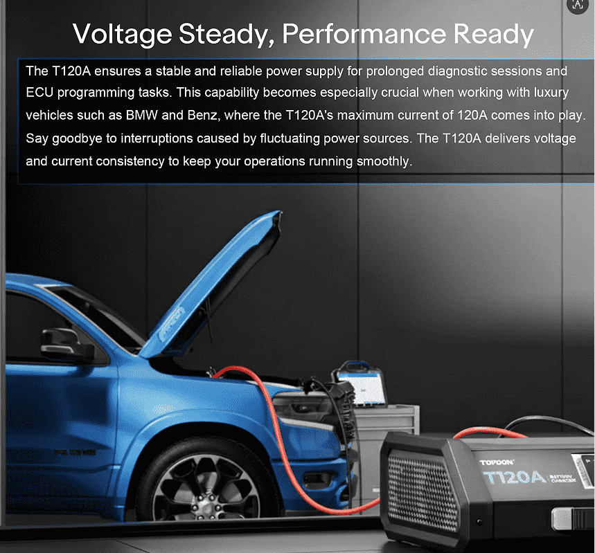 2.Stable Voltage Supply: Eliminates interruptions during sensitive diagnostics or programming, crucial for working with luxury brands (e.g., BMW, Mercedes-Benz).