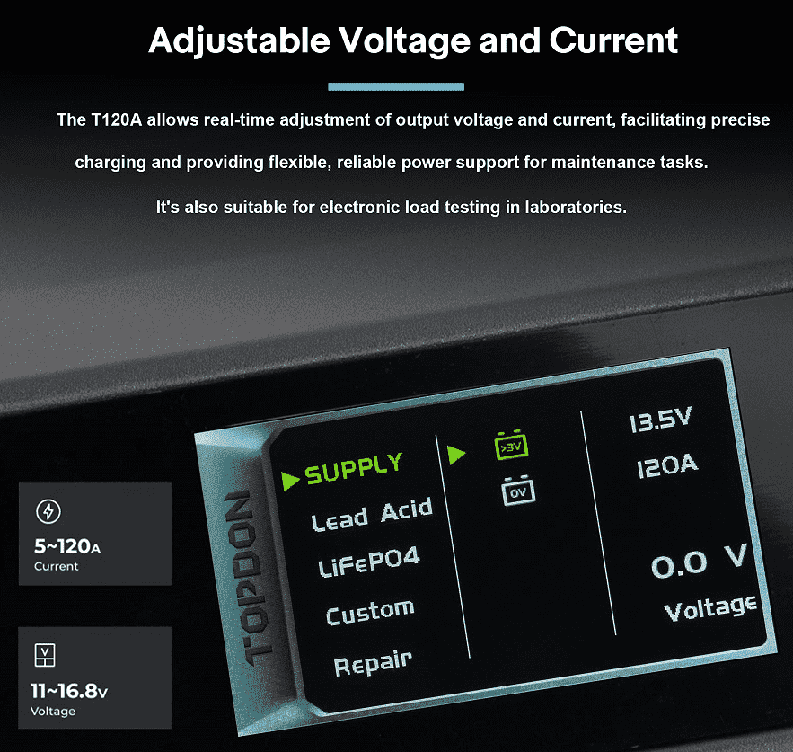 3.Adjustable Current: 5 – 120A